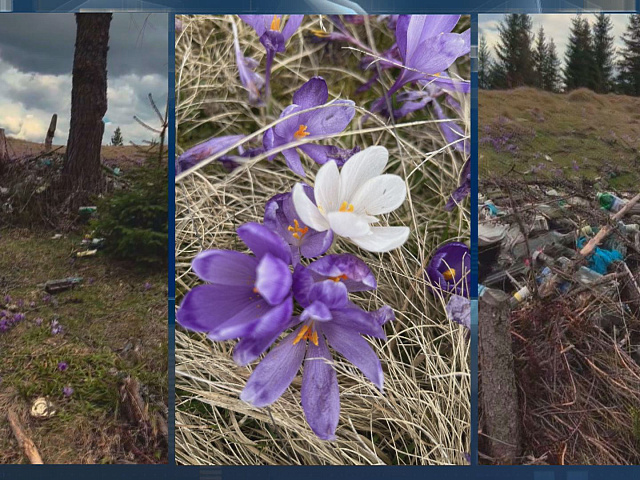 Скільки крокусів - стільки й сміття. Полонина Григорівка в Карпатах цієї весни вражає не лише красою, а й людською безвідповідальністю. Адже туристи, які приходять подивитися на заквітчані схили, залишають по собі гори сміття. Відео в мережі опублікувала мандрівниця з Коломиї Ірина Сирвачова.