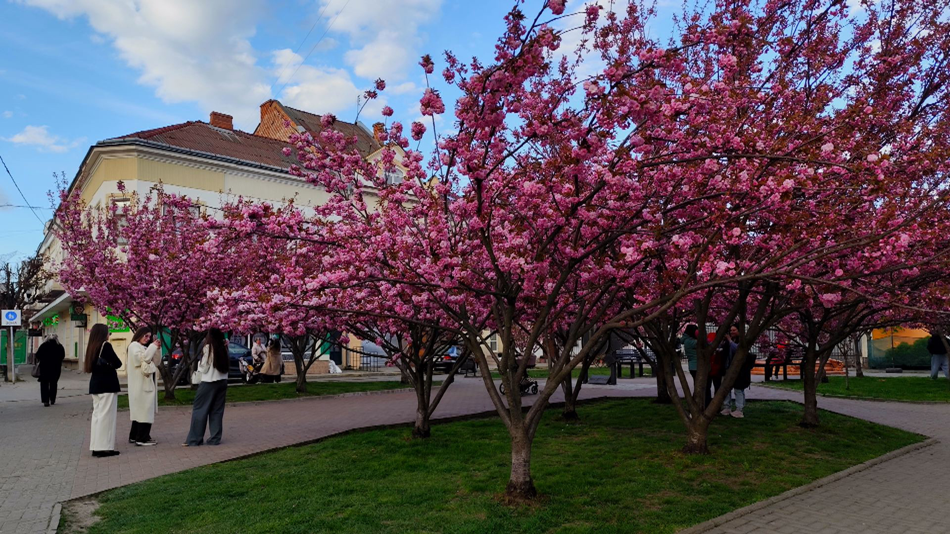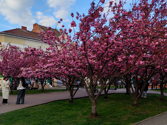 У Коломиї квітнуть сакури. Рожеві алеї приваблюють містян і туристів, які спеціально приїжджає сюди, щоб на власні очі побачити цю красу. Люди не втрачають нагоди зробити яскраві фото та відео.