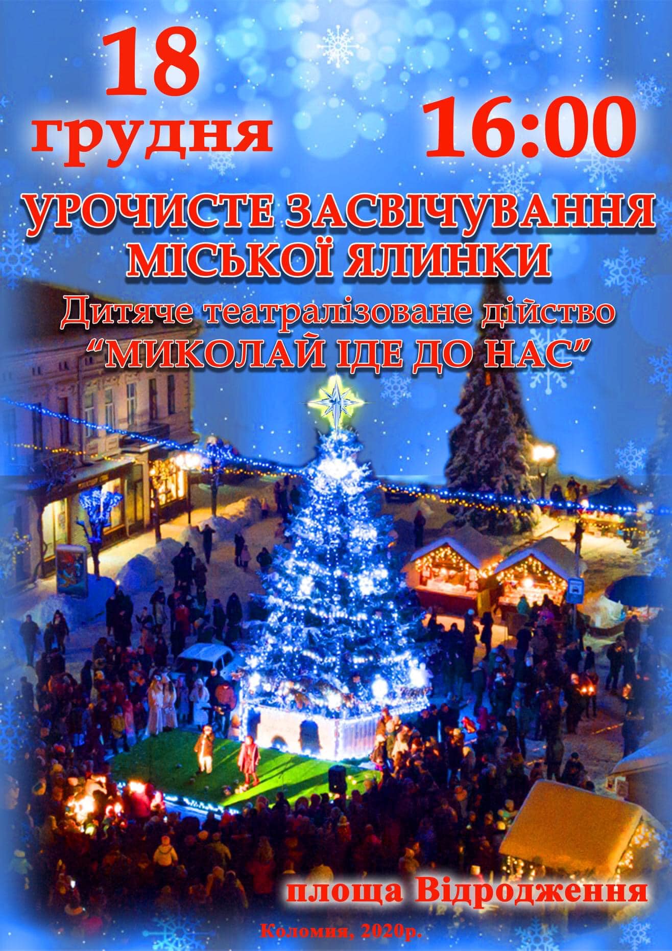 18 грудня у Коломиї засвітять головну ялинку міста та проведуть біля неї дитяче театралізоване дійство "Миколай іде до нас".